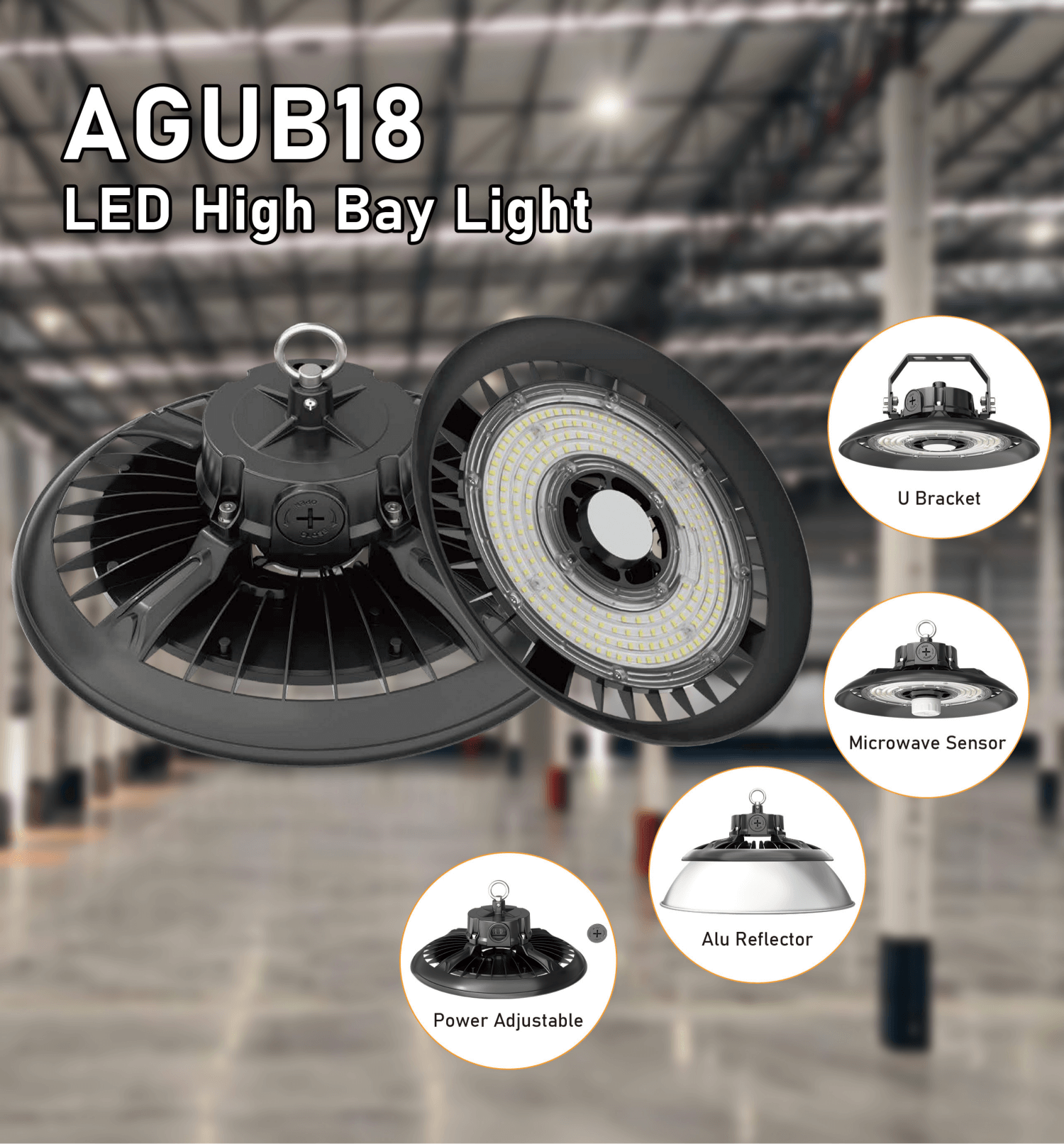 ה-AGUB18 כולל מארז אלומיניום עמיד ועדשת פוליקרבונט בעלת חוזק גבוה, המתאימים לתנאים תובעניים כגון מפעלי תעשייה, אתרי כרייה ומתקנים ציבוריים גדולים. העיצוב המודולרי שלו תומך בשלושה מצבי התקנה - התקנה על וו, תלויה או התקנה על קיר - המאפשרים התאמה לגבהי תקרה ותצורות מבניות שונות.